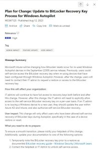 It’s important to note that these changes will exclusively impact users who were previously granted self-service recovery of BitLocker keys during Autopilot. This applies specifically to situations involving device restoration or reset. For the majority of users, who haven’t been granted such privileges, the transition will likely go unnoticed.
